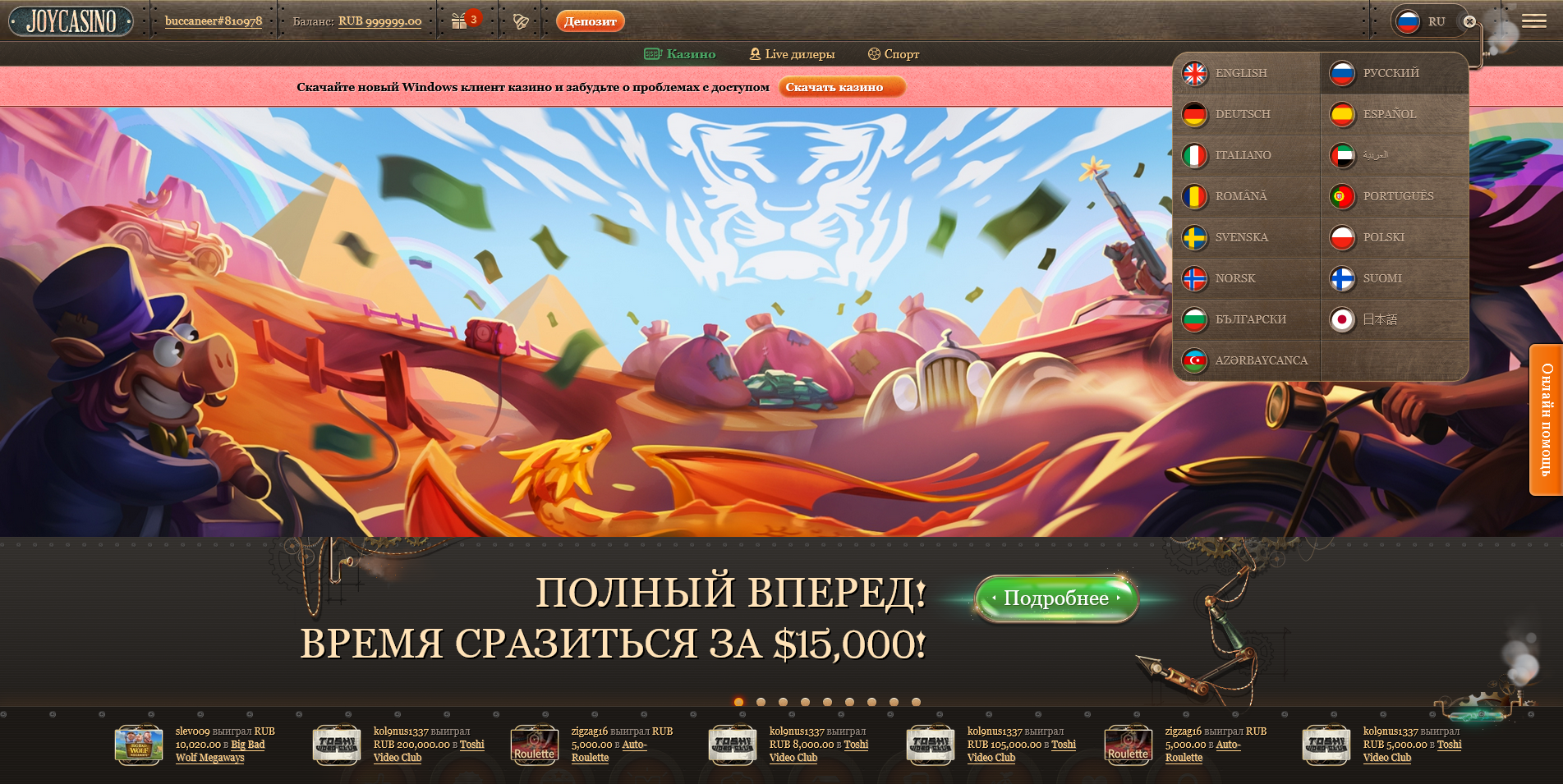 Данный скрипт представлен в оформлении оригинального сайта Joycasino.